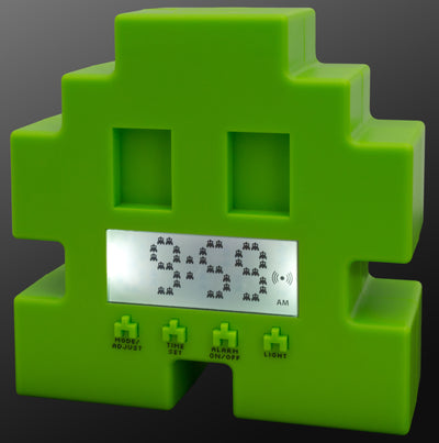 The space alien on your nightstand is just the Space Invaders Alarm Clock, it won't harm you, you don't have to shoot at it, but with its loud 8-bit arcade sound and its movements, it pulls you out of sleep.