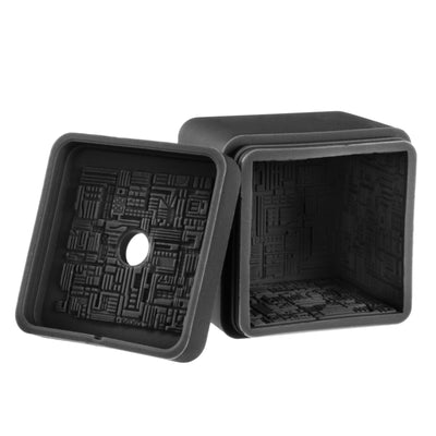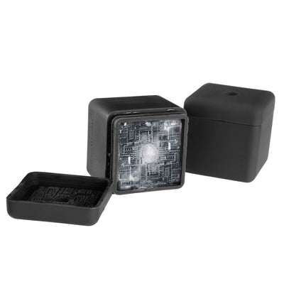 For a new icy Borg cube, close the lid of the silicone mold and fill it with water through the small hole. The mold must be really full so that the top side also gets a nice structure. By the way, if you use hot water, the ice cube will be clearer and look even better. Alternatively, you can color the water with food coloring as shown in our picture. After freezing, you can remove the lid and press out the finished ice cube. The Cube measures 3.5 x 3.5 x 3.5 cm.