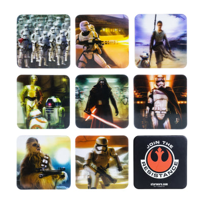 The special effect of the images is created by so-called lenticular images, which you probably know as wobble images. Depending on the viewing angle or when you move the coaster, the many small prisms on the surface create a spatial illusion. And you can hardly do better than with motifs from The Force Awakens enjoy.