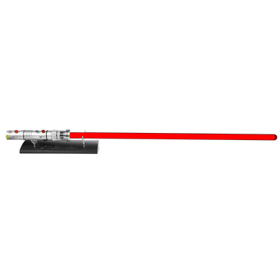 A special feature of Darth Maul's lightsaber is that it can be used to double-bladed sword if you have two of his lightsabers. The included adapter makes it possible to connect the two hilts together. But be careful, double-bladed sabres require a lot of practice, otherwise you'll soon be missing a limb or two...