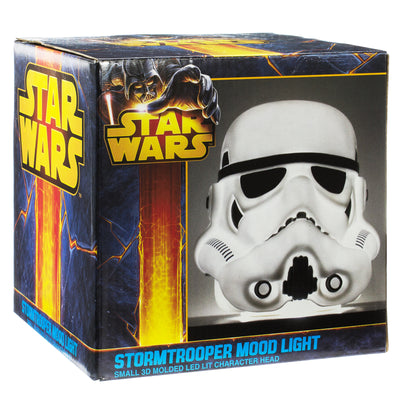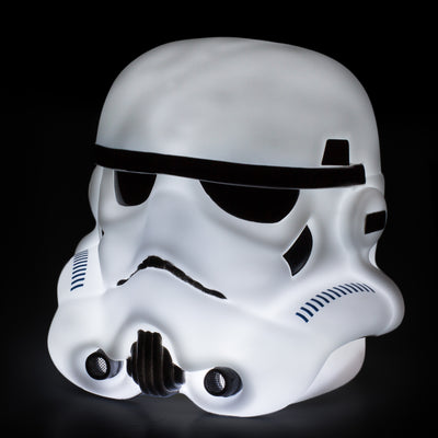 The mood lights are particularly effective when it is already dark. The Stormtrooper's helmet emits white light all around, with the black parts like the eye area standing out in contrast.