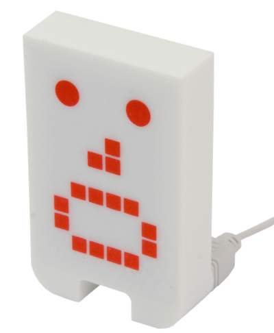 Tengu is a small animated face for the USB port. Tengu can display many different faces, which move in sync with the ambient sounds. By blowing briefly on the face, you can change the type of face displayed. The face is shown by small red light dots on Tengu's black surface. So, Tengu's face can move to your favorite music or any other sounds.