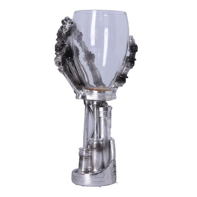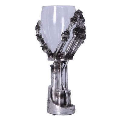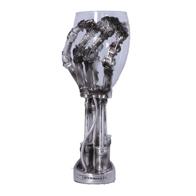 • Drinking vessel modeled after the metal skeleton of the Terminator model T-800; Consists of a drinking glass and a replica of a Terminator hand; Detailed and hand-painted; Official licensed product