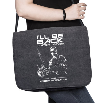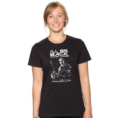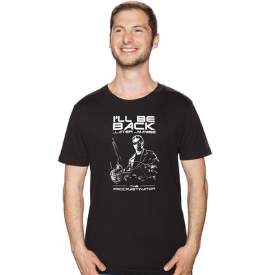 The "The Procrastinator" T-Shirt shows the full extent of the change: From the striking "I'll be back" it has become a half-hearted "I'll be back... later... maybe". All that's missing is for Arnold to trade his shotgun, leather jacket, and motorcycle for a remote control, pajamas, and a sofa...
