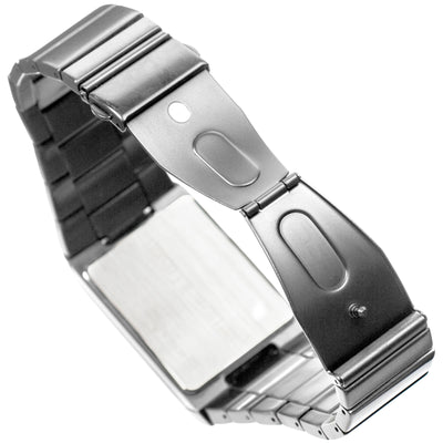The touchscreen display consists of four zones, which are also explained in our product video. Here you can access individual functions such as backlight, alarm, etc., but also set the watch. In animation mode, the watch switches every 20 seconds between a digital display and the optical illusion. The display is in 12-hour mode and there is an indicator for AM/PM.