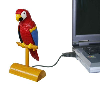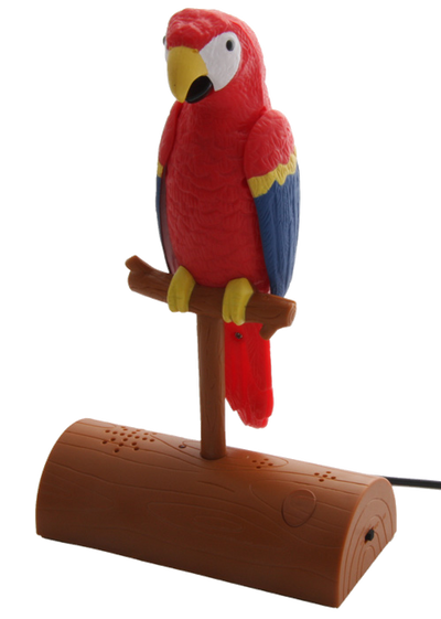 The USB parrot behaves just like a real parrot: It can remember what you have said and then repeats it. And just like a real parrot, the timing of when the recorded speech is played back is random. So you should be careful about what you say if you don't want to insult your mother-in-law.