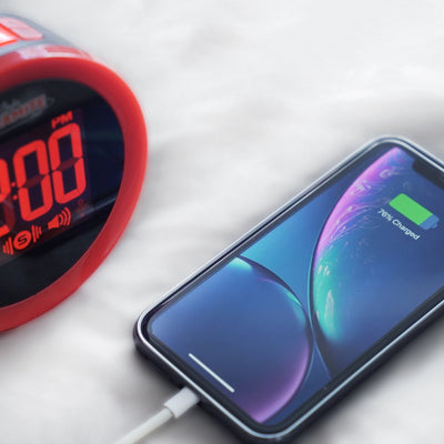 Thanks to the four alarm modes you can customize the alarm experience to your needs, from an almost silent wake-up (vibration only) to a hellish inferno (alarm sound + vibration + flashing light). The alarm clock also has a USB portwhich you can use to conveniently charge your smartphone or other devices. Power is supplied in the classic way via a mains plug, but with an optional CR2032 battery (not included) you are also protected against a spontaneous power failure.