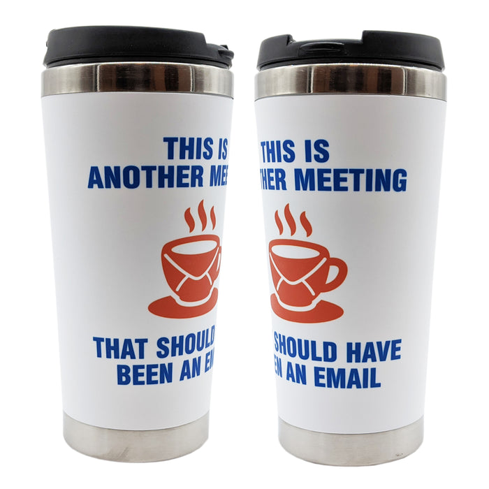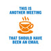 Wie der "Another Meeting"-Thermobecher zurecht anmerkt, würde in den meisten Fällen eine E-Mail reichen. Man müsste keine Konferenzräume buchen, Präsentationen vorbereiten, Kaffee und Schnittchen organisieren und so weiter. Aber irgendwie scheinen viele Menschen einen Meeting-Fetisch zu haben. ;)