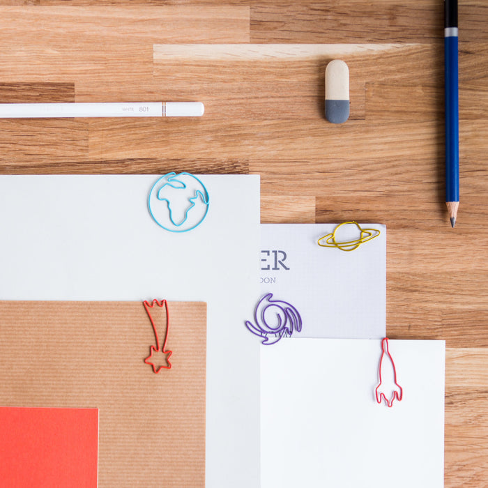 Um wichtige Unterlagen und andere Papiere zusammenzuhalten, eignen sich die thematisch passenden Büroklammern Weltall allerdings besser. Natürlich kannst du sie auch auf der Erde benutzen. Hier gibt es zwar keine Schwerelosigkeit, aber wie wir alle wissen reicht auch schon ein Windstoß oder etwas Tollpatschigkeit aus, um Chaos zu stiften.