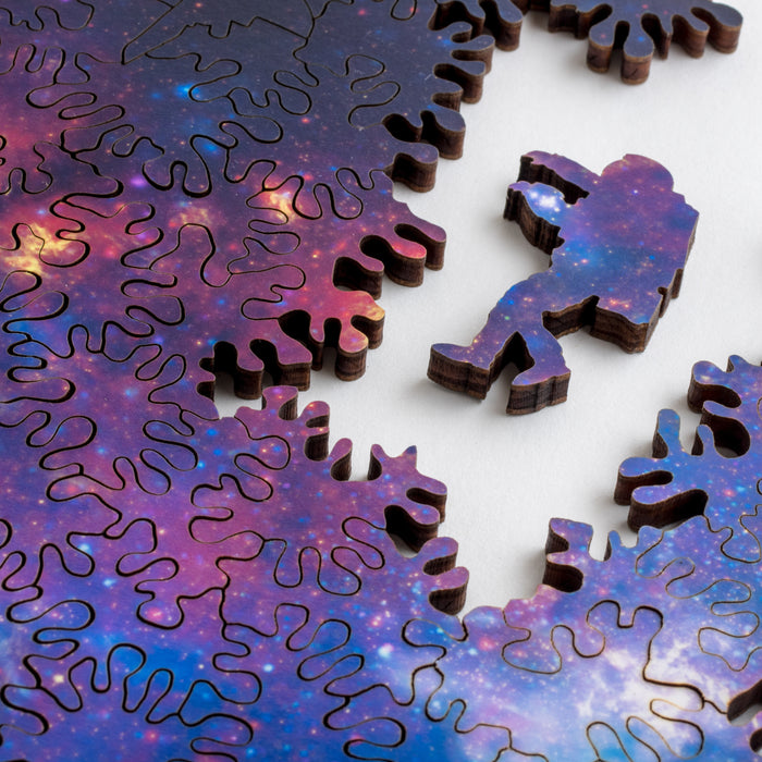 Just like real galaxies and celestial bodies, the puzzles cannot be combined in a non-destructive way because each one is unique and is cut from a single piece.
