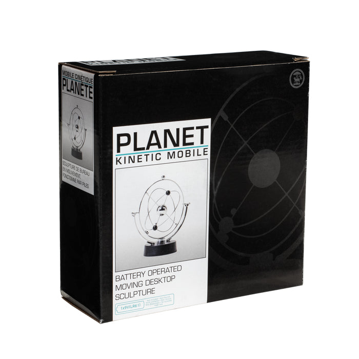 As we have not yet been able to invent the perpetual motion machine (we are working on it, we promise!), both mobiles require batteries (not included) to magnetically support the oscillation. The planetary model requires a 9V battery, the orbit model makes do with 2 AA batteries.