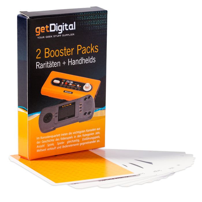 Man kann sich ja viel darüber streiten, welche Konsole die beste ist, aber leider kann man sie nicht gegeneinander antreten lassen. Mit den Booster Packs Raritäten und Handhelds mit insgesamt 32 Karten in einem Set, bietet sich dir nun eine Möglichkeit! Darunter sind Perlen wie die Nintendo Color TV Game (1977) oder, selbstverständlich, der Nintendo Game Boy (1989). Letzterer schlägt übrigens seinen Vorgänger mit 812 zu 15 Spielen. ;)