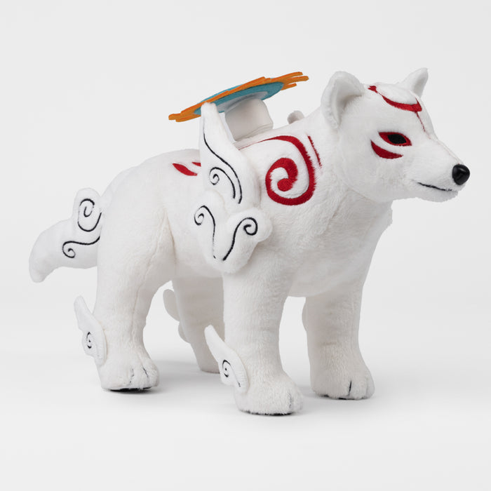 If you have taken Ammy to your heart while playing, you can bring her home to you in the form of the Okami cuddly toy Amaterasu. There she will watch over you and save you from your demons, whether real or imaginary. She is modeled on the original version from the game down to the last detail, including the removable reflector on her back.